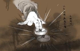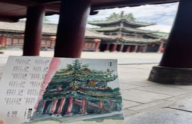 馬妍手繪作品——《晨鐘暮鼓染城隍》